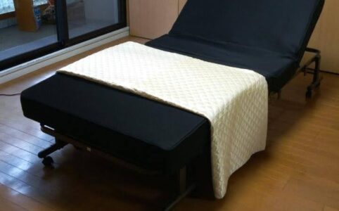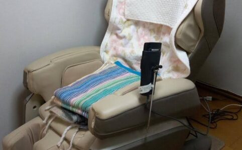 屏風がなくてスッキリした寝室。 が、ここで寝るわけではない。 で、マッサージ機を持ってきた。 アトリエ兼倉庫へ移動した屏風は縦長に置くことにした。 教材の棚のうしろに収まった、と言いたいが、ドアの出っ張りがあって20セン...