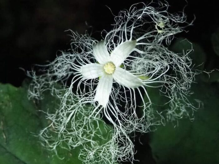 カラスウリといえば、赤い実が可愛らしいですが、花はびっくりするような形状をしています。