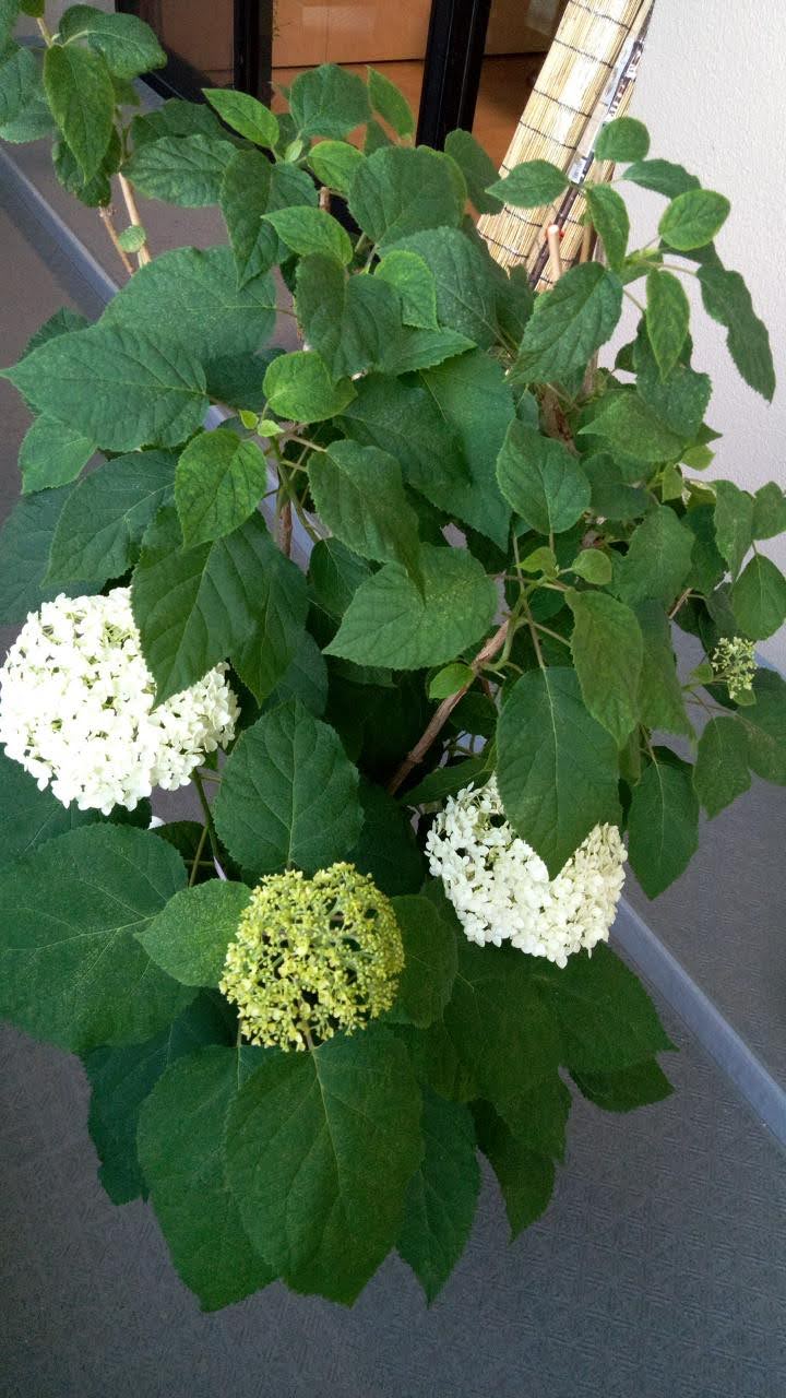 そうだ、わが家の洋アジサイアナベルがかなり大きくなってきた。