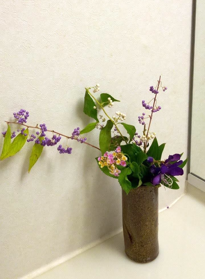 この日Kさんがムラサキシキブ、ランタナ、ノボタンを持ってこようと用意して、玄関先に置いて忘れた。