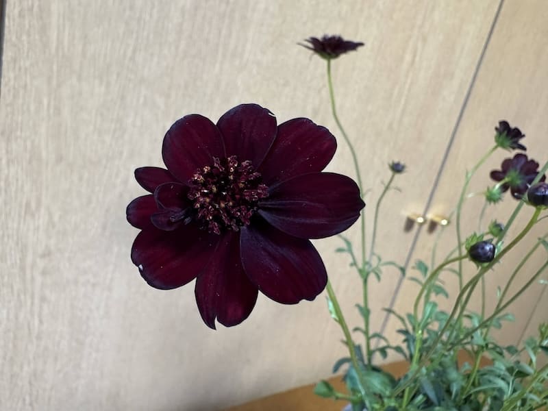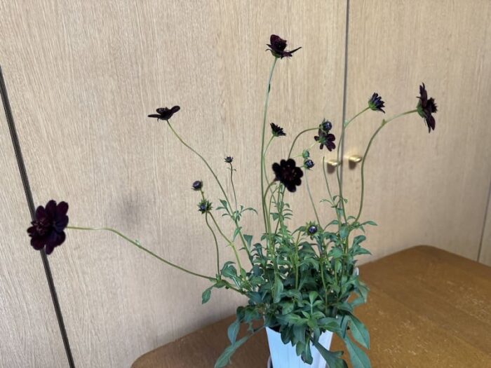 チョコレートブラウン、もともとはコスモスにつけられた名前のようで、今日北千里の花屋で見つけた。