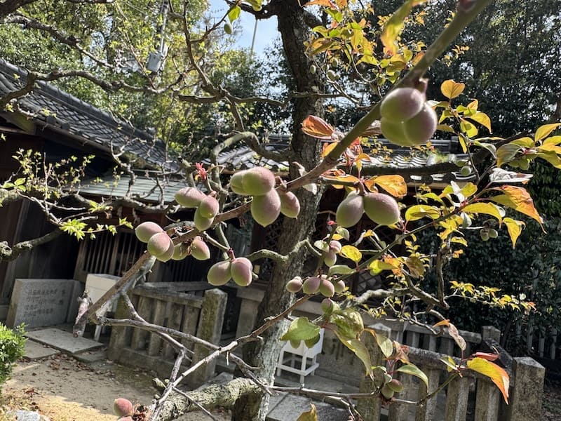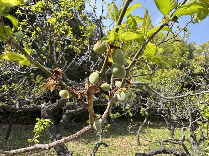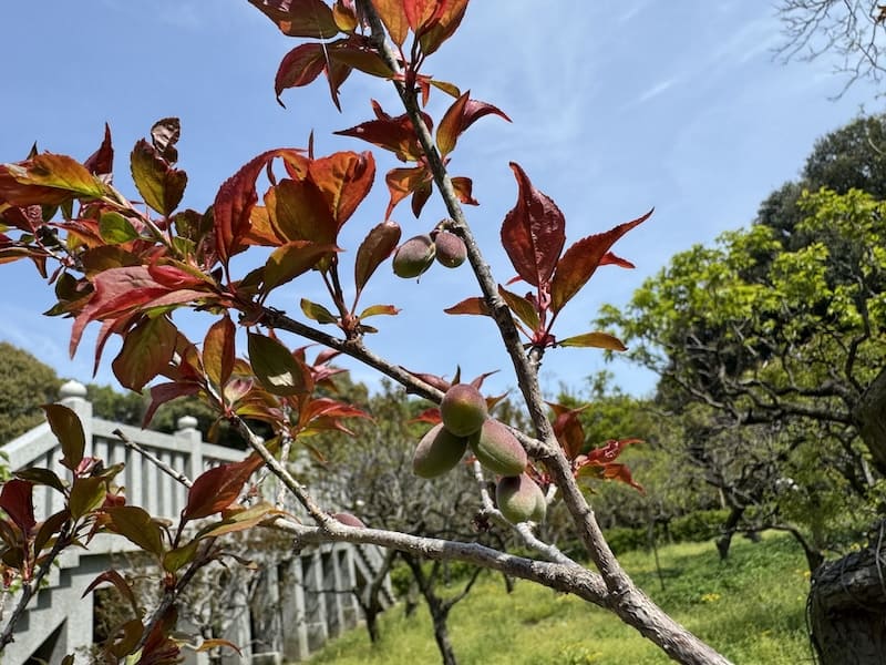 お社にお参りをしてぐるっと梅林を見て回ると、どの木にも少しずつ実がついています。