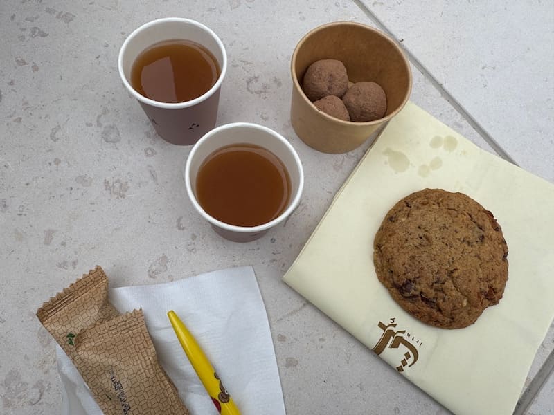 サウジアラビアのコーヒーとチョコ、ビスケット サウジのコーヒーは一風変わっていてとても美味しかったです
