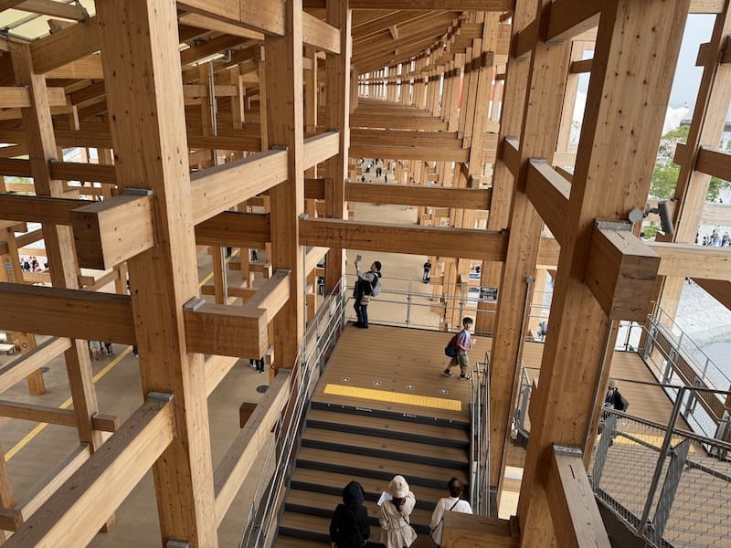 大屋根リングは木造のため、装飾なしのむき出し構造でもとてもナチュラル。