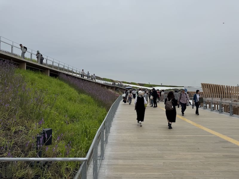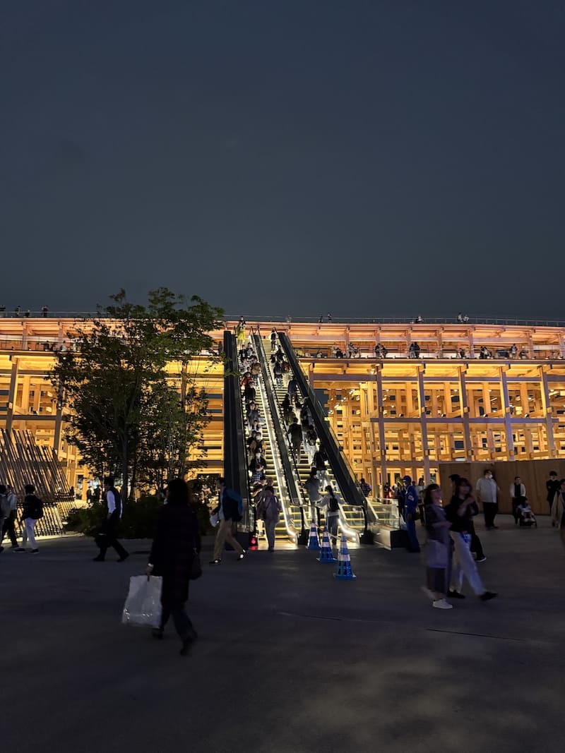 西口ゲートから大屋根リングへ向かうところ