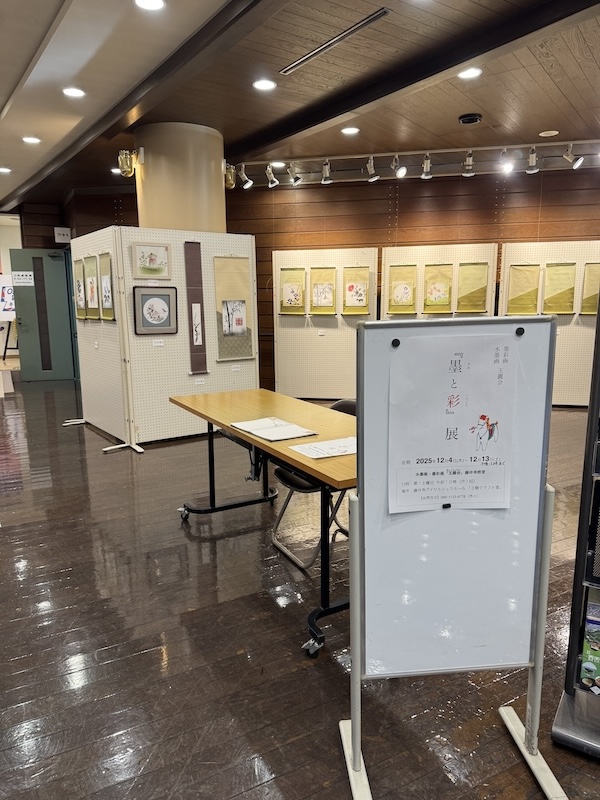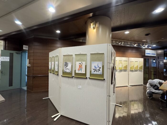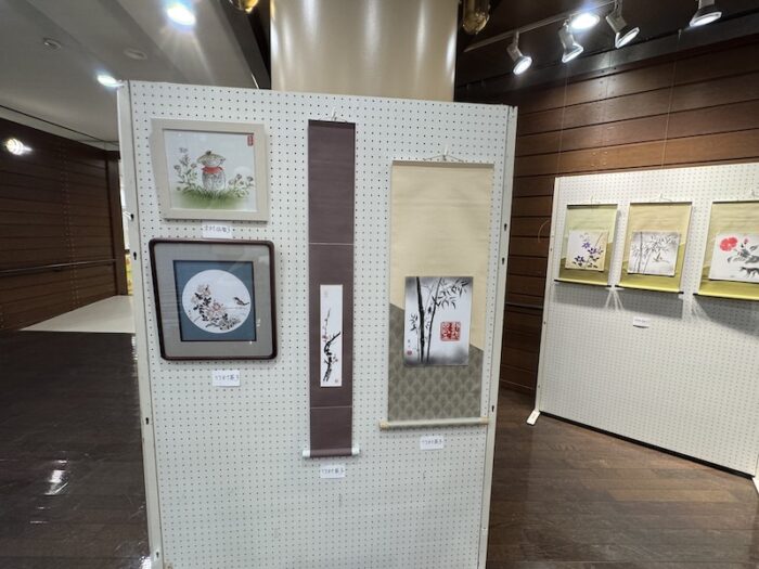 玉麗先生は風神様の大きなお軸、私は七福神の福禄寿(ロングヘッドのおじいさん)のタテ軸を出品しています。