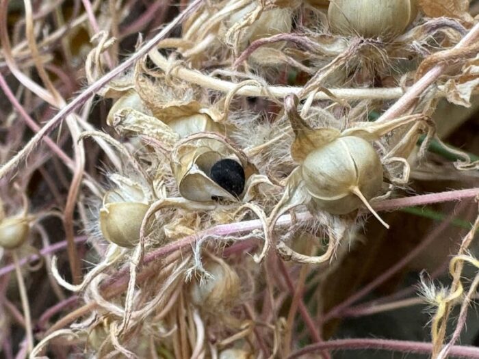 カプセルみたいな形に小部屋が分かれていて、その中に黒い種が入っています。