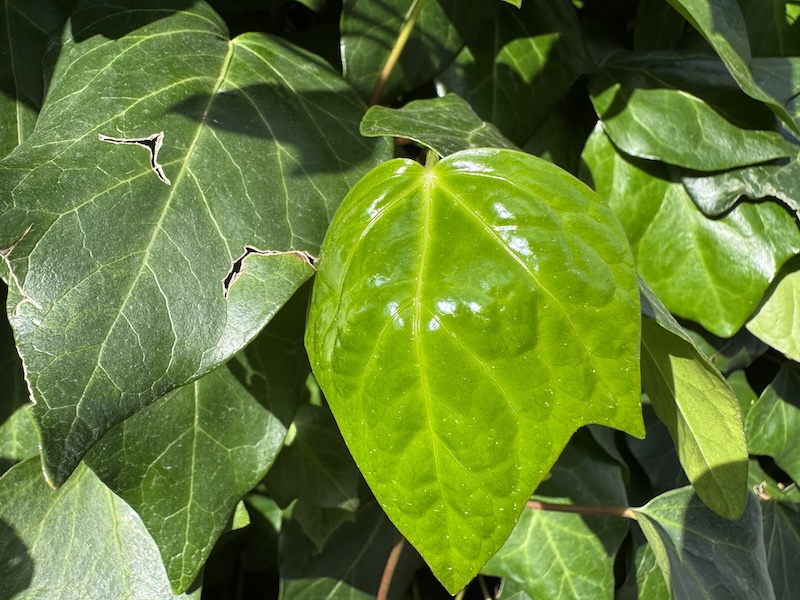 左のカサカサ葉に比べ、右側の新芽ツヤツヤ!